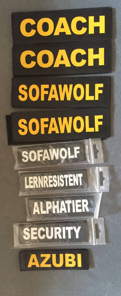 Aufschriften für K-Geschirre, Befestigung mit Klettverschluß